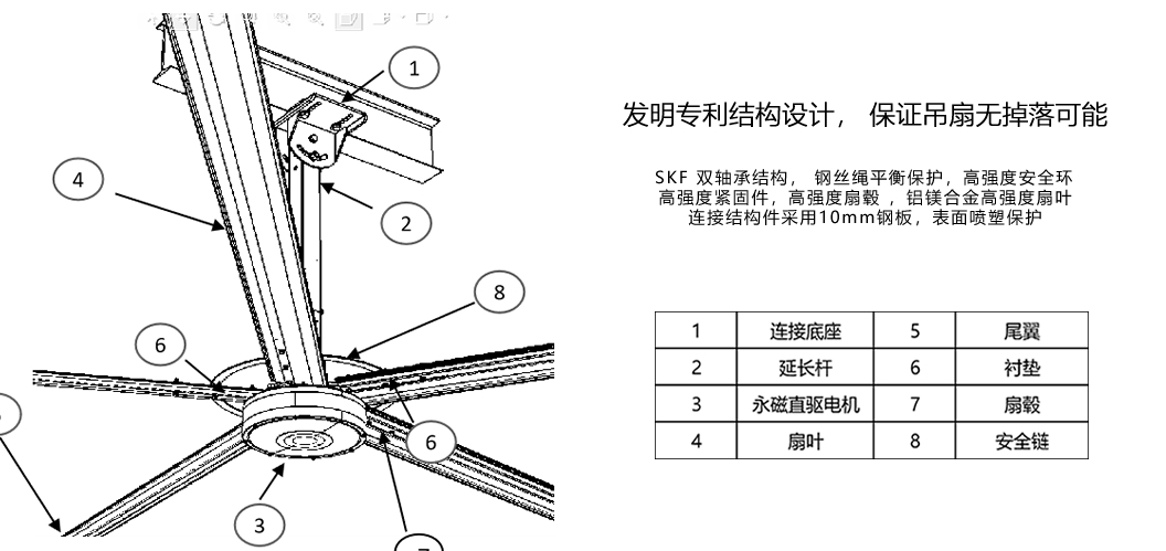 真正實(shí)現(xiàn)超大面積全方位覆蓋, 7.3米吊扇,大1500平米覆蓋面積