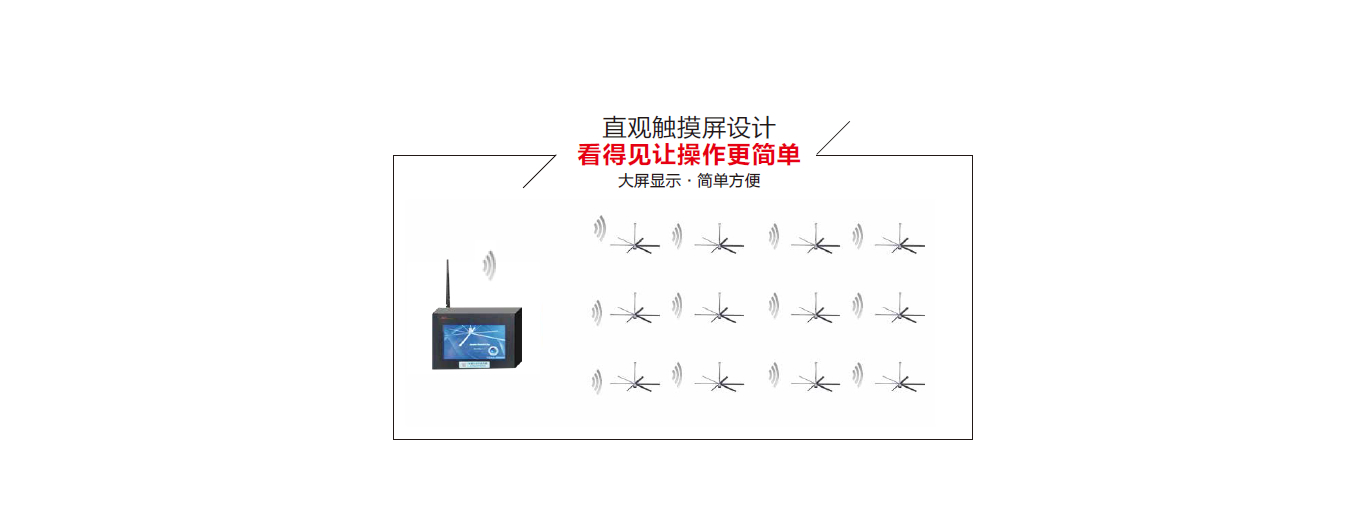 奧寶杰智能集控系統(tǒng)產(chǎn)品是專為方便同時控制管理多臺吊扇而研發(fā),特別適合大面積廠房,物流倉儲等場所。智能化控制包含吊扇控制, 遠程控制, 自動控制,接受溫度濕度信客制化控制,大數(shù)據(jù)控制.