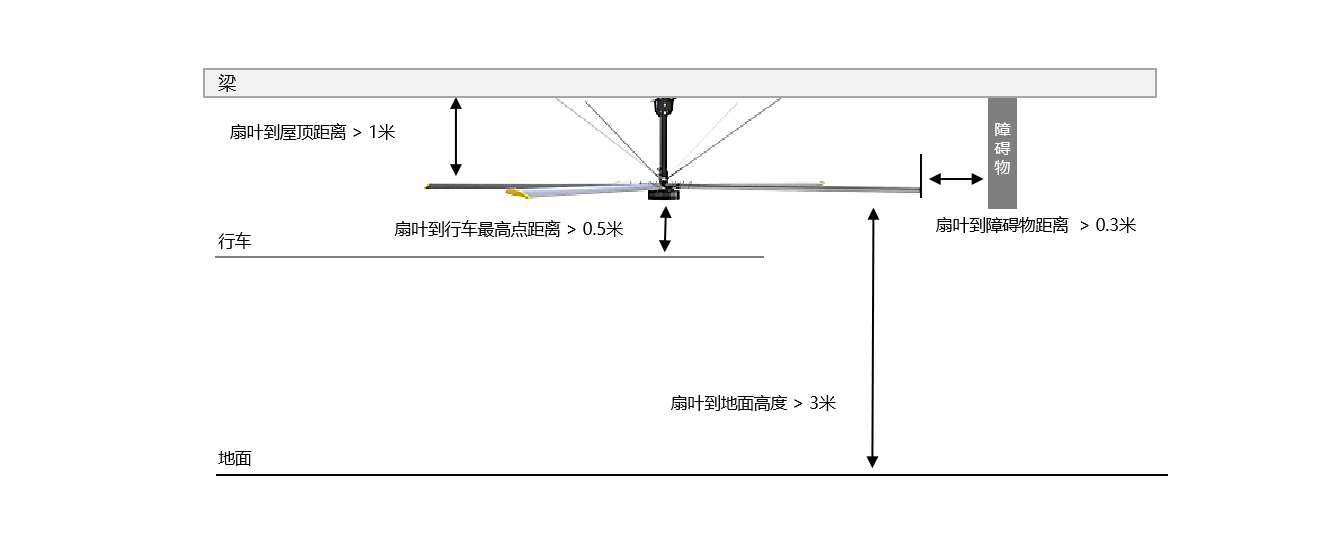 * 扇葉距離障礙物安全距離小0.3m。